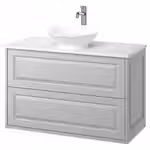В комплект входит: 1 шкаф под раковину с ящиками, 1 столешница, 1 накладная раковина, 1 сифон и 1 смеситель.