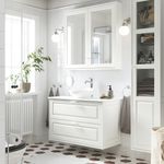 Мебель для ванной ЭНГШЁН выглядит современно и лаконично с минимумом деталей.