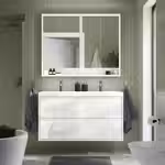 Мебель для ванной ЭНГШЁН выглядит современно и лаконично с минимумом деталей, чтобы каждый день начинался с чистоты.