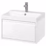 В комплект входит: 1 шкаф под раковину с ящиком, 1 интегрированная раковина, 1 сифон и 1 смеситель.