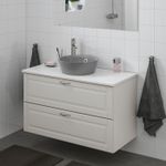 Особенности «GODMORGON/TOLKEN ГОДМОРГОН/ТОЛКЕН / KATTEVIK КАТТЕВИК Шкаф со столешницей 40см раковина – Кашён светло-серый/под мрамор 102x49x75 см» отмеченные производителем IKЕА: