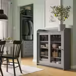 Используйте в любом помещении дома — по отдельности или в комбинации с другой мебелью ХАУГА. В этом шкафу-витрине ваши любимые вещи буду на виду и при этом надежно защищены от пыли. Отличное решение для хранения столовой
