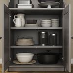 Этот высокий шкаф с 2 дверцами сочетает в себе открытое и закрытое хранение, а бортик на верхней полке предотвратит падение вещей.
