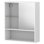 Полку можно переставлять в соответствии с потребностями хранения. Зеркало снабжено защитной пленкой с обратной стороны. Это снижает опасность получения травм, если стекло разобьется. Ширина: 60 см. Глубина: 17 см. Высота: 67 см.