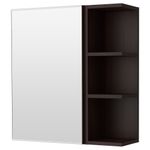 Открытый полочный модуль для хранения флаконов духов или других часто использующихся предметов. Ширина: 60 см. Глубина: 21 см. Высота: 64 см. Зеркальный шкаф с 1 дверцей: Дверь: ДСП, Пластмасса АБС, Пленка. Зеркальная часть: Стекло.