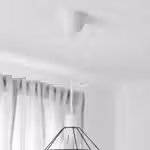 Глянцевый белый абажур направляет свет вверх, создавая мягкое рассеянное освещение и располагающую атмосферу в комнате.