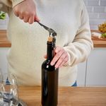 Этот штопор имеет конструкцию, позволяющую легко вытащить пробку в два приема, встроенный нож для срезания фольги на горлышке бутылки и практичную открывалку для бутылок.