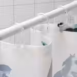 Эта штора с синими рыбками полностью изготовлена из переработанного полиэстера и будет гармонично смотреться с другими текстильными аксессуарами.