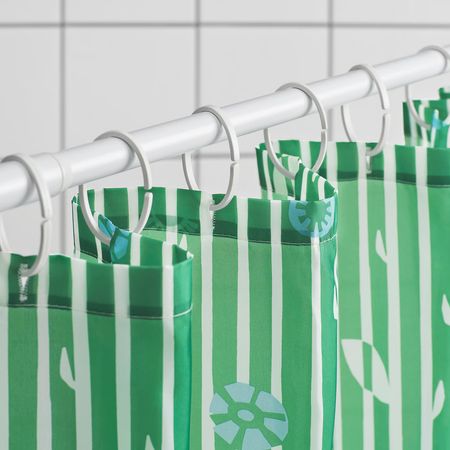 Можно дополнить кольцами и штангой для шторы в ванную.