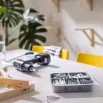 В набор входит: шурупы с круглой головкой: 10 шт. 4,5x 50 мм/30 шт. 4,5x 40 мм/20 шт. 4x 30 мм. Шурупы с потайной головкой: 10 шт. 4,5x 50 мм/30 шт. 4,5x 40 мм/20 шт. 4x 30 мм, 10 дюбелей 8x 37 мм и 45 дюбелей 6x 28 мм.
