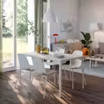 Создайте уникальную обеденную зону с серией SKÅLSTA, комбинируя сиденья с каркасами стульев и столешницы с ножками для стола, либо просто выберите готовый комплект.