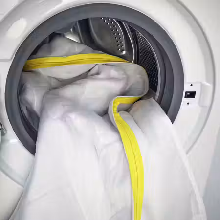 В этом решении предусмотрены специальные места для хранения, а также закрытый шкаф для моющих средств, которые часто загромождают свободное пространство, и открытые полки для удобного хранения предметов повседневного пользования.