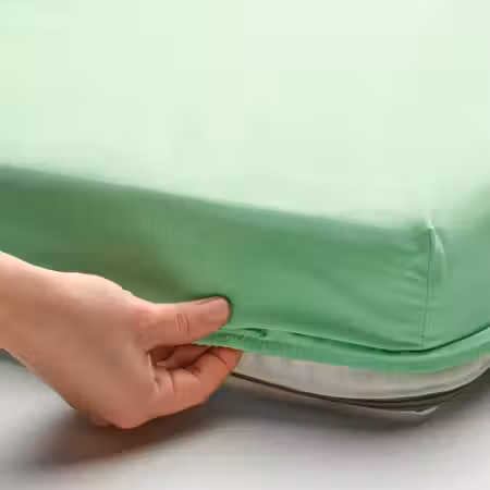 Мы рекомендуем использовать натяжные простыни для детских кроваток из ассортимента ИКЕА, которые подходят для наших матрасов, что позволяет сохранить форму и размер матрасов.