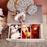 Достаточно места для больших мягких игрушек и мячей. Практичное решение, чтобы быстро убрать игрушки.