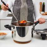 Скороварка проста и безопасна в использовании, так как регулятор давления поддерживает заданное давление и сигнализирует в случае его сильного повышения.