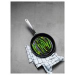 Ручка сковороды нагревается в процессе использования — обязательно пользуйтесь прихваткой, перемещая кухонную посуду или снимая крышку.