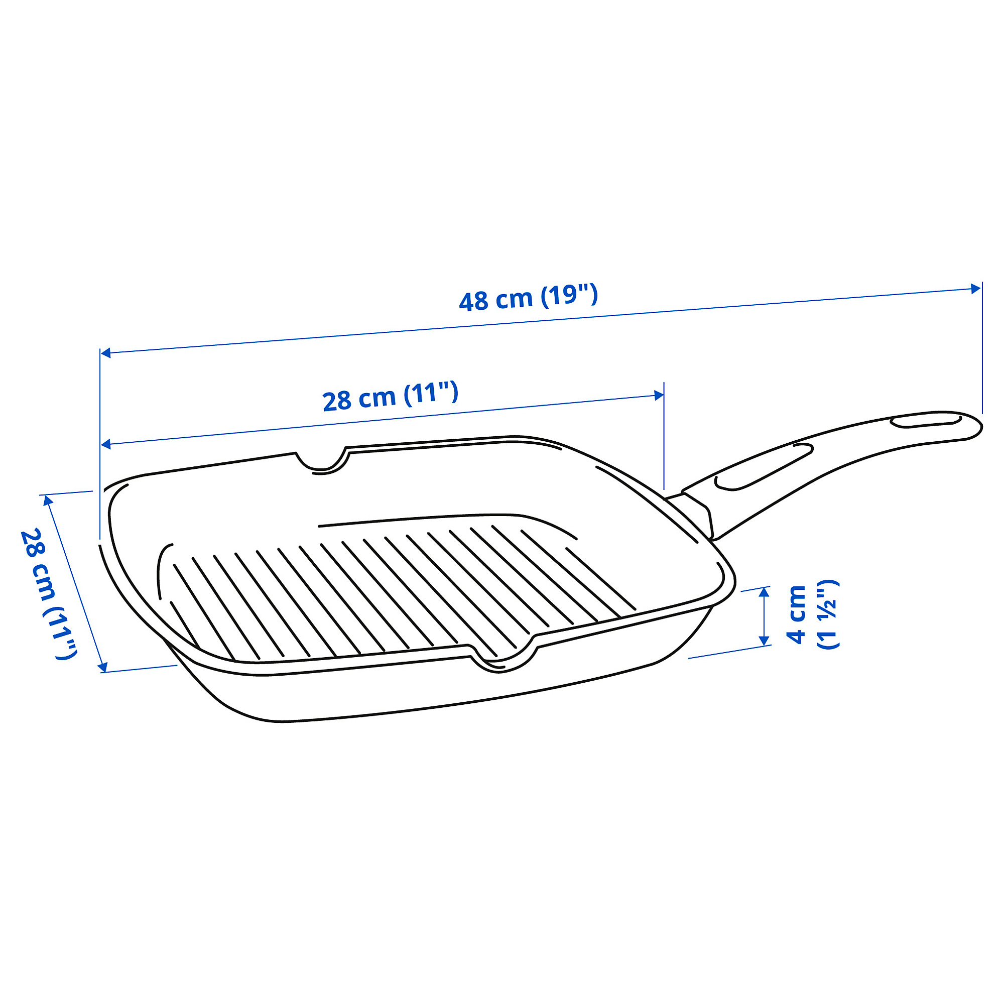 Сковорода для гриля, антипригарное покрытие черный, 28x28 см IKEA HEMLAGAD ХЕМЛАГАД включает в себя следующие материалы: