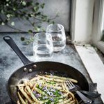 Чтобы прокалить кастрюлю/сковороду из углеродистой стали, обработайте поверхность маслом. Затем прогрейте кастрюлю/сковороду в духовке или на плите при температуре макс. 150 °С в течение как минимум часа. Дайте посуде остыть и вытрите излишки масла.