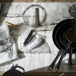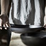 Чтобы прокалить кастрюлю/сковороду из углеродистой стали, обработайте поверхность маслом. Затем прогрейте кастрюлю/сковороду в духовке или на плите при температуре макс. 150 °С в течение как минимум часа. Дайте посуде остыть и вытрите излишки масла.