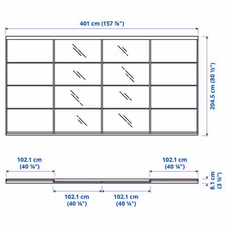 Установка дверей возможна, даже если они немного перекрывают друг друга. Однако это не рекомендуется, если вы используете прозрачные панели, так как место перекрытия будет видно, когда двери закрыты.