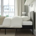 Кровать КЛЕППСТАД — это стильный современный дизайн с металлическим каркасом и уютным изголовьем с тканевой обивкой.
