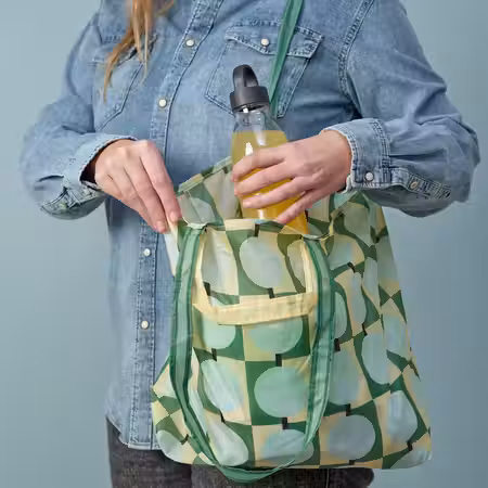Эта удобная и легкая сумка помещается даже в карман, но при этом легко превращается во вместительную сумку, которую можно носить на плече.