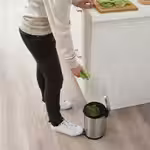 Это небольшое ведро с откидной крышкой идеально подходит для мусора, который не должен залеживаться.