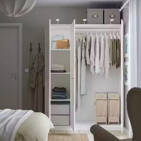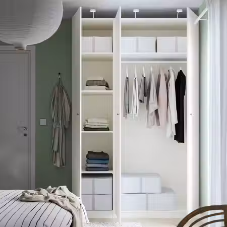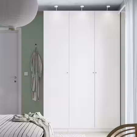 Соединители позволяют установить регулируемую платяную штангу ХЭЛПА на внешней поверхности гардероба ПЛАТСА, чтобы увеличить возможности хранения одежды.