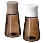 Мельницы для специй и бутылки для масла/уксуса ХАЛВТОМ придадут кухне стильный ресторанный облик. Скульптурная форма и коричневое стекло сделают эти аксессуары заметными и на обеденном столе, и на рабочей поверхности около плиты.
