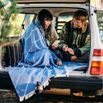 Сине-серый плед ХЮМЛЕМОТТ обеспечит тепло и комфорт.