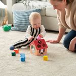 В набор входит: 1 домик со съемной крышей и 6 блоков разных форм и цветов.