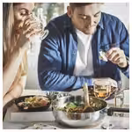 Вы можете готовить при небольшом уровне нагрева и экономить энергию, так как нержавеющая сталь хорошо нагревается и долго удерживает тепло.