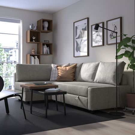 ФРИХЕТЭНУ – это угловой диван, который легко превращается в комфортную двуспальную кровать. Вместительное отделение под сиденьем станет идеальным решением для хранения постельных принадлежностей. Этот просторный диван займет совсем немного места в вашем доме.