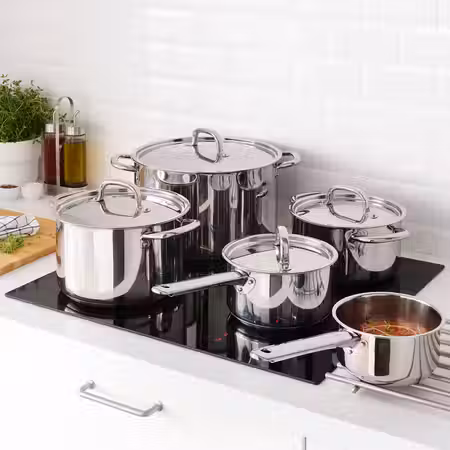 Эта кухонная посуда лаконичного дизайна проста и удобна в использовании.