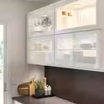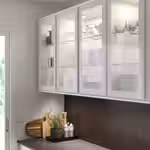 За ними вы можете выставить красивую посуду, а также установить подсветку, чтобы создать в кухне приятную атмосферу.