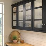 Стеклянные дверцы ЛЕРХЮТТАН выполнены в традиционном стиле: скошенная рама из массива дерева и панель из закаленного стекла.