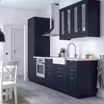 Кухонная филенчатая дверца АКСТАД с матовой синей поверхностью подойдет для интерьера и в современном, и в традиционном стиле.