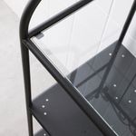 Съемные полки легко протирать. Невысокий стеллаж из серии РЁНШЭР. Изящный каркас и полки из стекла и металла позволяют аккуратно разместить сложенные полотенца и косметические средства, придавая интерьеру ванной комнаты уютный вид.