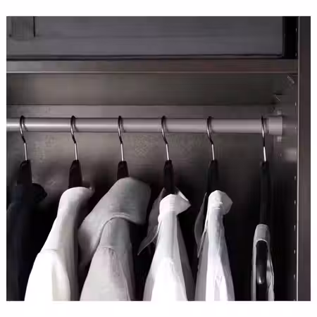 Обязательный элемент любого гардероба: одежда, развешенная на плечиках на платяной штанге, не мнется и прекрасно видна, поэтому утром найти нужную вещь не составит труда. А чтобы еще больше облегчить поиски, платья можно развесить по цветам или