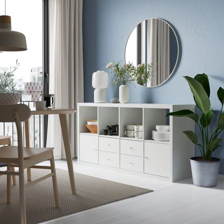 В зависимости от особенностей пространства, эту комбинацию КАЛЛАКС можно поставить вертикально или горизонтально, вместо серванта.