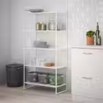 Стеллаж изготовлен из стали с порошковым покрытием, что обеспечивает прочность, простоту в уходе и защиту от ржавчины.