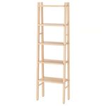 Этот стеллаж в виде лестницы из мелкозернистого массива березы экономит место и придает ванной комнате оригинальный вид.