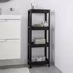 Стеллаж поместится в самую маленькую ванную, решив при этом проблему хранения различных мелочей и туалетных принадлежностей, а также шампуней, мыла и кремов.
