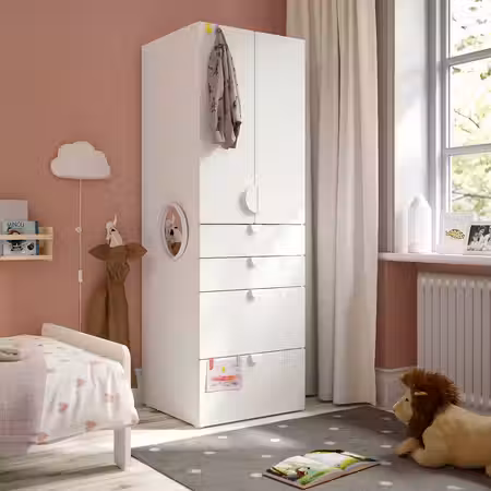 Несмотря на компактные размеры, этот гардероб обеспечит много места для хранения вещей — от подгузников до подростковых джинсов.