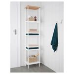 Верхняя полка сделана из бамбука – прочного натурального материала, который можно использовать в помещениях с повышенным уровнем влажности. Широкий и узкий стеллаж – идеальное решение для ванной.