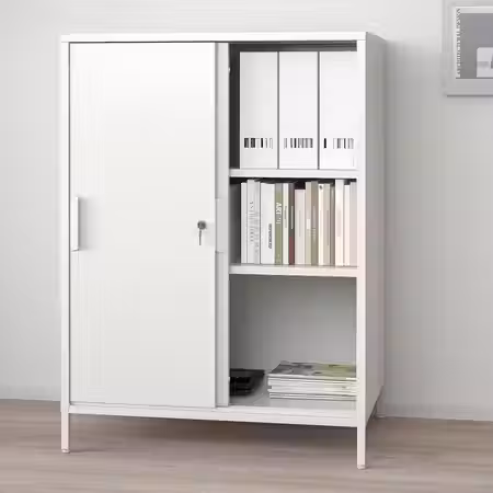 Двусторонний шкаф ТРОТТЕН с раздвижными дверцами обеспечивает доступ к вещам с обеих сторон, поэтому его особенно удобно использовать как разделитель помещения.