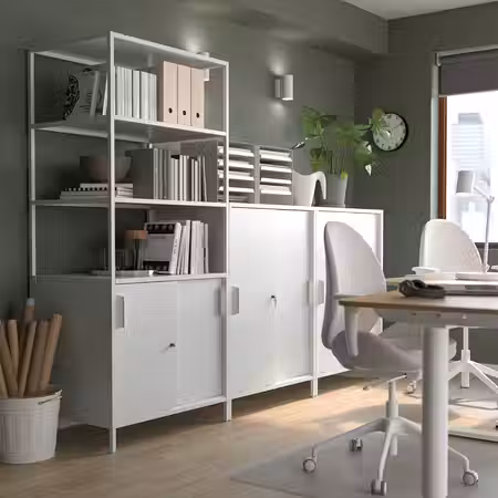 Система хранения ЙОСТЕЙН не боится повышенной влажности, так что ее смело можно ставить в ванную или прачечную или использовать на открытом воздухе, например, на балконе.