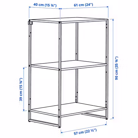 Стеллаж изготовлен из стали с порошковым покрытием, что обеспечивает прочность, простоту в уходе и защиту от ржавчины.