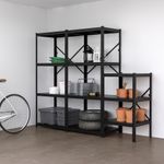 Стеллаж с шкафчиком отличается долговечностью, прост в уходе и защищен от коррозии, т. к. изготовлен из гальванизированной стали с покрытием. Подходит для хранения тяжелых предметов, например инструментов и книг.