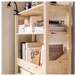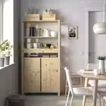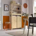 Прочный массив сосны, из которого изготавливается мебель для хранения ИВАР, обладает выразительной фактурой с вариациями цвета и рисунка поверхности, что придает каждому предмету уникальный облик.